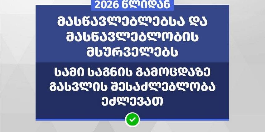 მასწავლებლებსა და მასწავლებლობის მსურველებს სამი საგნის გამოცდაზე გასვლის შესაძლებლობა ეძლევათ
